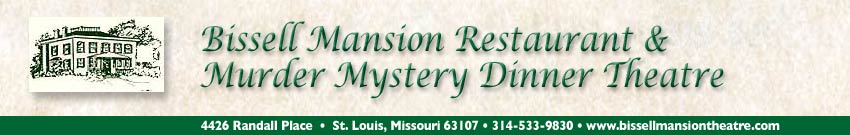 Join us for an evening of laughter and great food in St. Louis’ oldest home. You can be part of the cast, ask for a “starring” role in the show, or just sit back, relax, and guess “whodunnit.” The Bissell Mansion Participatory Murder Mystery is presented with a 4-course meal to DIE for! So make your Reservations for our current show now, call 314-533-9830. It would be a CRIME to miss out on this much fun!